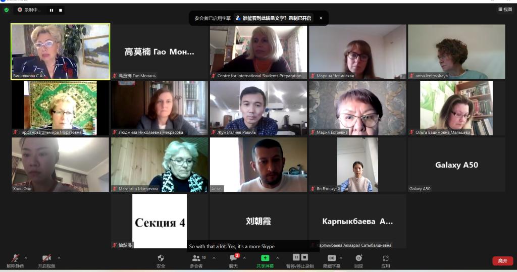 开幕式结束后,来自中国、俄罗斯、白俄罗斯、哈萨克斯坦等国的专家学者通过线上线下结合方式进行开幕式主旨演讲。俄罗斯国立师范大学雷萨科娃教授、北京外国语大学黄玫教授、白俄罗斯戈梅利国立大学科瓦利(В. И.Коваль)教授、哈萨克斯坦国立欧亚大学努尔加利(К. Р.Нургали)教授、上海外国语大学张晖博士、俄罗斯莫斯科理工大学赫罗莫夫(С. С. Хромов)教授、俄罗斯圣彼得堡国立大学莫斯科夫金(Л. В. Московкин)教授、太阳成官网李谨香副教授等8位国内外知名高校的专家学者,分别就对外俄语教学、俄语高级翻译人才培养、中国与东斯拉夫民族传统文化比较、俄语文学中的哈萨克斯坦本土文本、斯特鲁伽茨基兄弟科幻书写中的大自然形象、语言教学论视域下的俄语语法新现象、中俄两国俄语教学体系比较、中国当代俄语学等问题作主旨发言。