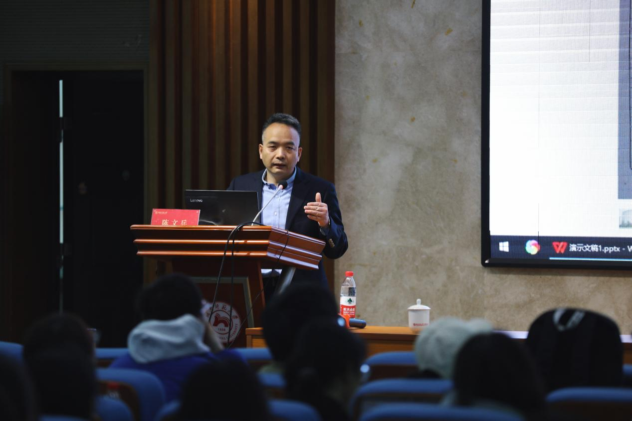 讲座结束后,陈文兵与现场师生进行互动交流。他鼓励同学们,不仅要心中有理想,还要脚踏实地,努力提升自我,无论以后从事什么职业,都要不断超越、提升自己,使自己变得优秀,为国家做出贡献。