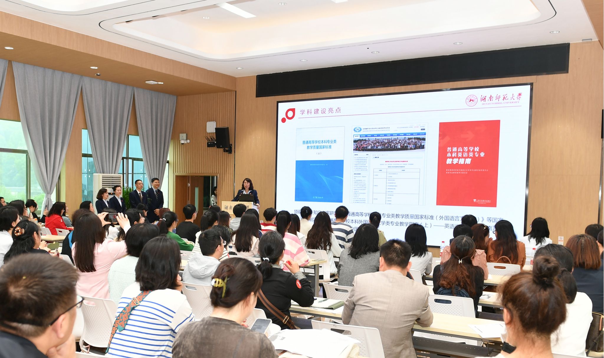 曾艳钰介绍了学院外国语言文学世界一流学科建设亮点,并从人才培养、师资队伍、科学研究、社会服务、文化传承、国际交流等方面介绍了学院世界一流学科新一轮建设目标和任务。她表示,学院积极贯彻党的教育方针,落实立德树人根本任务,突出教师教育特色,发挥学科优势,打造学科高峰,深化学科交叉融合,带动学校相关支撑学科协同发展,同时积极对接国家需求,讲好中国故事,服务湖南“三高四新”战略,引领国家外语教育改革,在美国文学研究、外语基础教育、中外文化传播等领域形成中国特色和国际影响力。
