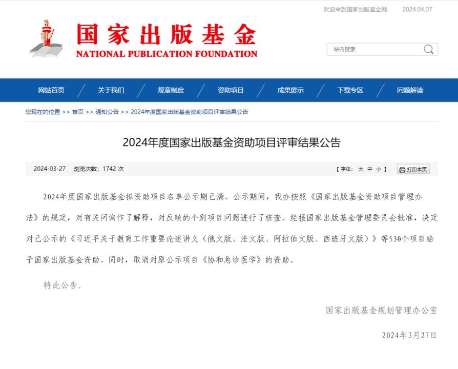 国家出版基金是继国家自然科学基金、国家社会科学基金之后第三个以国家名义设立的专项基金,坚持“体现国家意志,传承优秀文化,推动繁荣发展,增强文化软实力”的基本宗旨,主要鼓励和支持优秀公益性出版项目的出版,是国内出版界的最高资助项目。