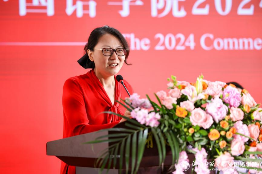 院长曾艳钰教授代表学院向2024届全体毕业生表示最热烈的祝贺,向所有关心、支持和帮助各位毕业生成长成才的亲人、师长和朋友表示最衷心的感谢。她回顾了学院与同学们同成长、共进步的每一个点滴,并给同学们提出了三点希望和建议,一是坚定理想、勇担使命,用奋斗之心展青春作为,二是笃学不倦、上下求索,以好奇之心迈进取之路,三是从容不迫、笑看未来,怀勇敢之心应百态人生。她表示未来不论同学们身在何处,学院永远守望大家、牵挂大家、祝福大家,也欢迎同学们常回家看看。
