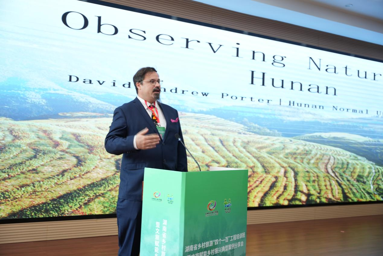 David副教授以Observing Nature in Hunan(探索湖南自然风光之美)为主题,阐述了自然、文化和旅游之间的密切联系。他从一位高校教师、自然摄影师和作家的视角出发,分享了在湖南乡村的自然风光与历史文化双重体验。他认为营造良好的生态环境是推进新时代中国乡村振兴的必由之路,期待在中国的乡村游历中感悟到更多自然之美与文化之韵。