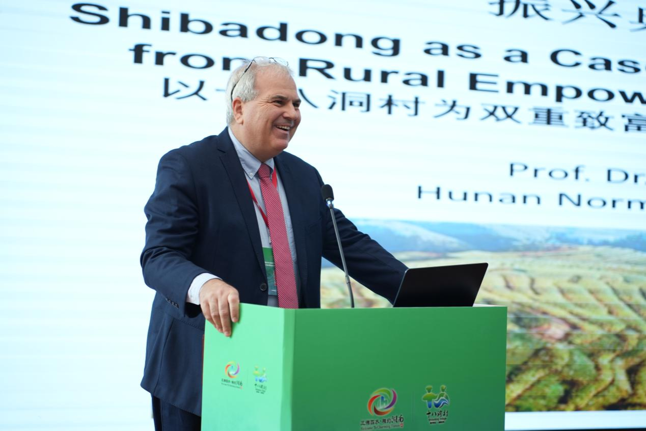 Ole教授以Shibadong as a Case Study for Twofold Enrichment: from Rural Empowerment to Global Connectivity(以十八洞村为双重致富的案例:从乡村赋能到全球互联互通)为主题,指出中国乡村经济的繁荣发展离不开各级政府部门的高效引领与人民群众的辛勤劳动。他认为,面向未来,政府部门应当注重文旅人才培育并加强国际交流合作,进一步发挥十八洞村作为中国乡村振兴典型案例的国际传播力与影响力。