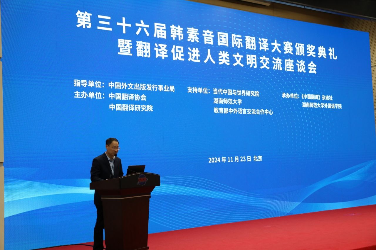 (通讯员 傅馨可)11月23日,由15vip太阳成15vip太阳集团官网承办的第三十六届韩素音国际翻译大赛颁奖典礼暨翻译促进人类文明交流座谈会在北京盛大举行。此次活动吸引了来自外交部、中国侨联、中国日报、央视总台等单位,大赛共同承办单位,全国相关院校和翻译专业机构代表,以及全国大赛获奖代表、最佳组织奖获奖院校代表等共200多人参加。太阳成官网副校长潘安练、15vip太阳集团官网党委书记沈贤岚、副院长蒋莉华等出席颁奖典礼。