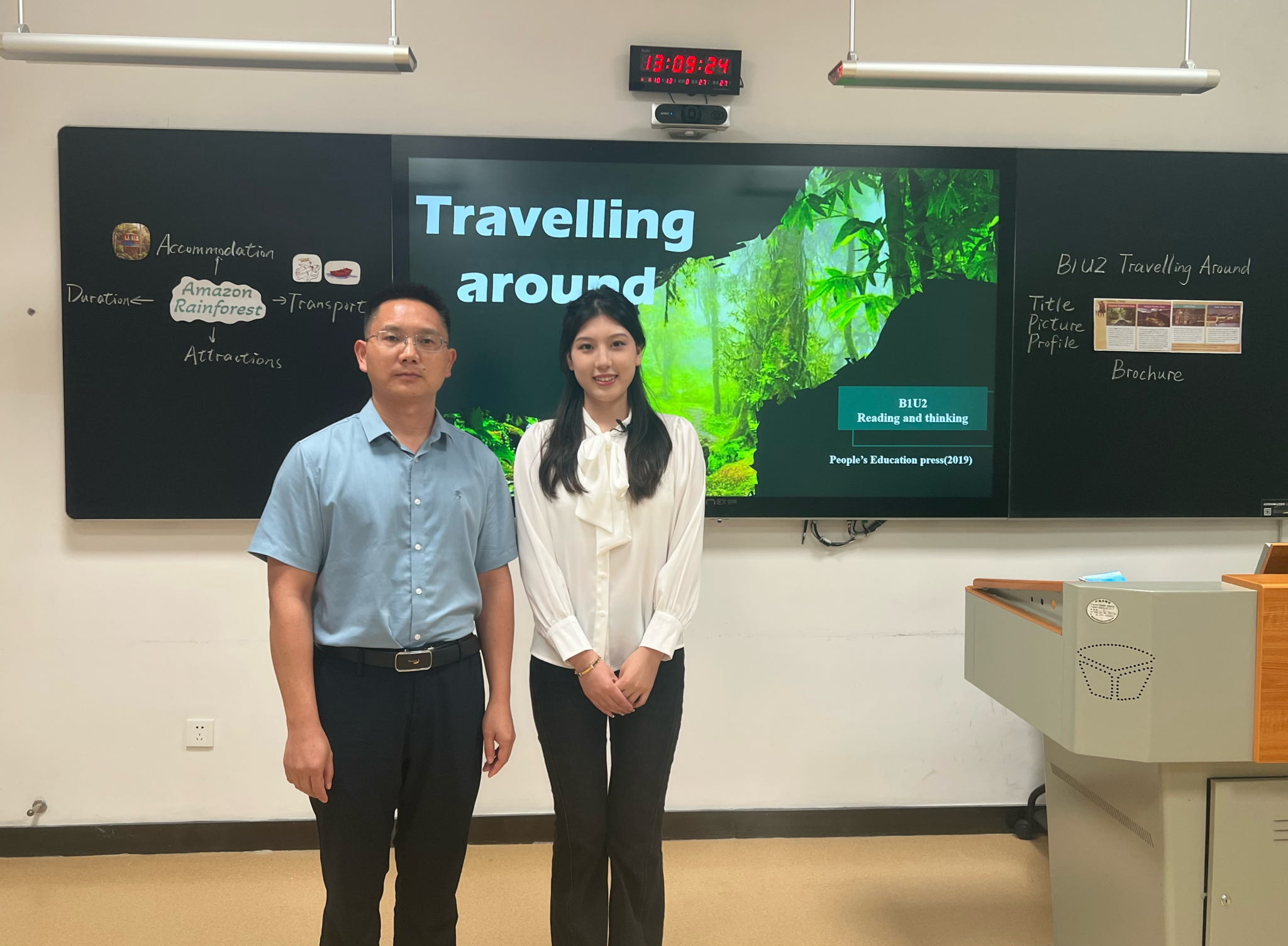 决赛赛制极具挑战性。从现有通用高中英语教材中随机抽取一个单元的一种课型,选手一人一题,课型涵盖读思、读写、综合技能、语言知识、综合评价等。抽题后,选手需在无网络环境下在120分钟内完成1课时的教学设计和1课时PPT制作,并现场抽取即席讲演的题目,经过5分钟准备后进入竞赛室进行3分钟的即席讲演,随即开始10分钟的有生片段教学。韩佳琪同学抽到新人教版高中英语教材必修三Unit2 Morals and Virtues的语言知识板块Discovering Useful Structures。对于本堂语言知识课,在2个小时的备赛过程中,韩佳琪训练有素,沉着冷静,并紧密结合高中英语新课标教学活动观、单元整体教学、核心素养及教学评一体化要求,高质量完成了教学设计、课件制作与教学展示。