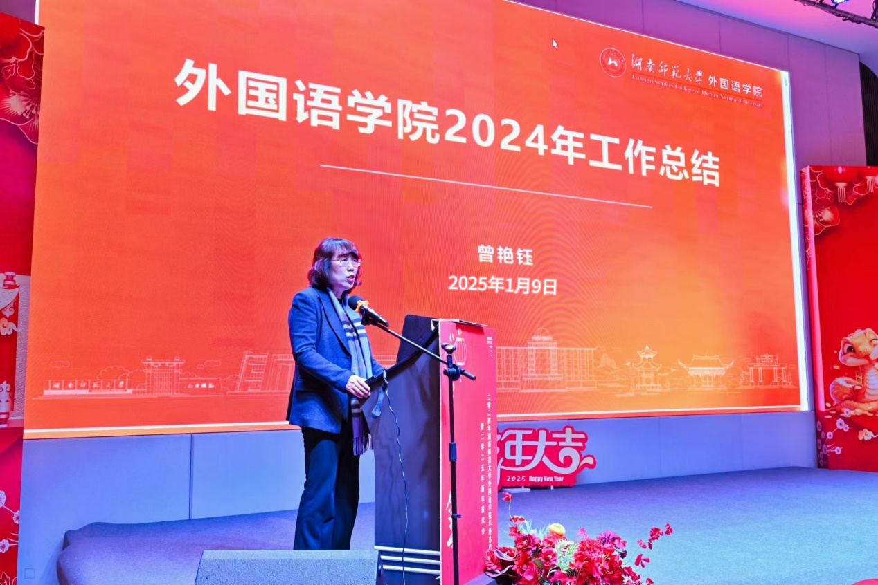 院长曾艳钰教授代表学院做2024年工作总结报告,她从党建工作、人才培养、师资队伍建设、社会服务与国际交流以及如何应对当前面临的挑战等6个方面回顾总结了2024年学院事业发展的整体情况,对2025年学院未来工作进行了展望。曾院长既肯定了学院在各方面取得的突出成绩,也提出了学院发展面临的各项挑战。她提出,要积极应对挑战,谋求学科发展的新路径,尤其要重视建立“外语+”复合型人才培养模式,努力实现人工智能与国际传播、智慧教育等跨学科交叉融合,力求做到人才培养、学科建设与国家战略及地方社会发展紧密对接,提升区域国别研究的国际影响力,共同为15vip太阳集团官网的辉煌未来贡献力量。