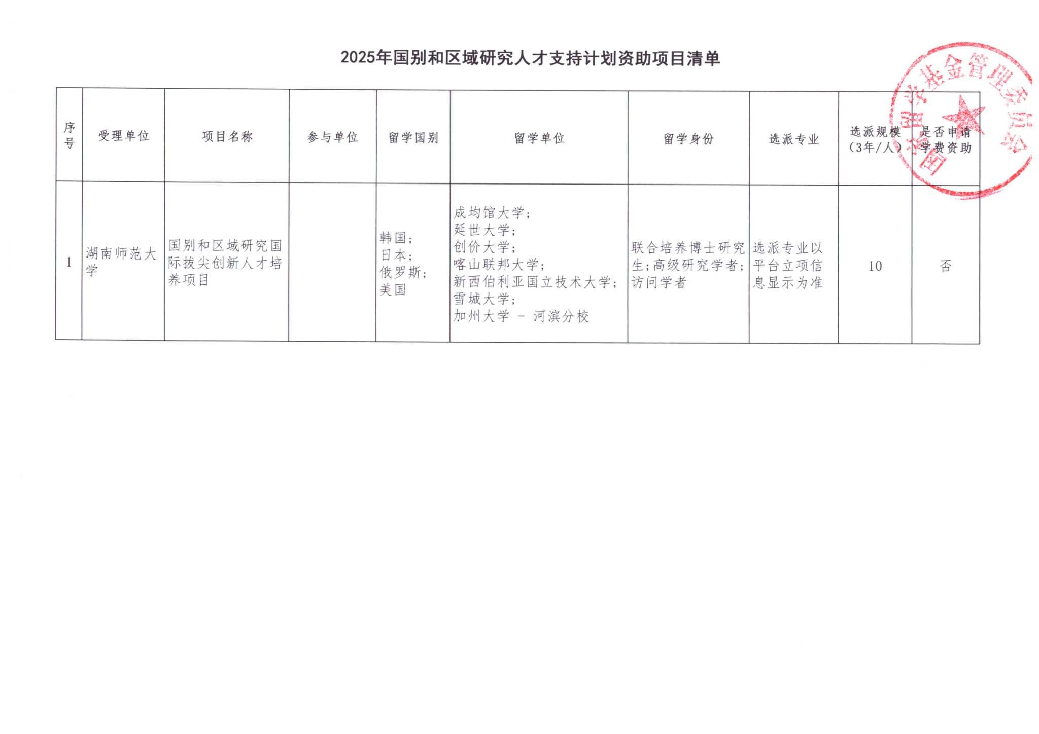 此次获批的“国别和区域研究国际拔尖创新人才培养项目”项目合作单位包括韩国成均馆大学、延世大学,日本创价大学,俄罗斯喀山联邦大学、新西伯利亚国立技术大学,美国雪城大学、加州大学-河滨分校等七所海外高水平院校。项目执行期为三年(2025-2027年),旨在通过国际合作培养具有国际视野和拔尖创新能力的国别和区域研究人才。
