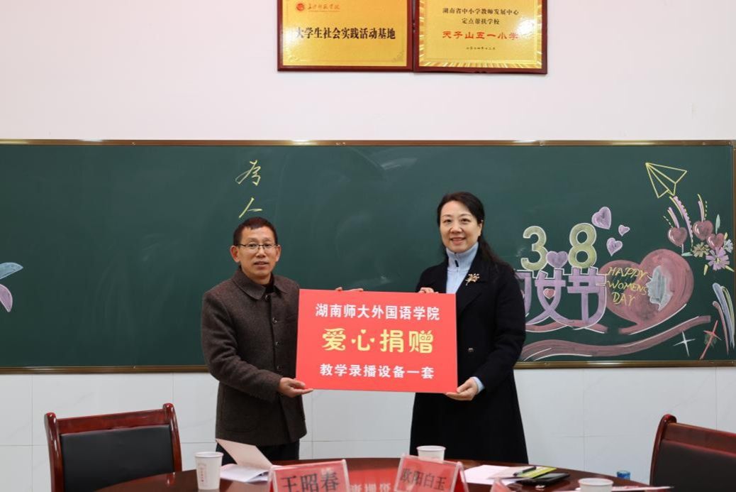 据悉,天子山五一小学是太阳成官网授牌的第16所乡村外语教育实践基地,这也是太阳成官网自获批湖南省总工会劳模工作室后助力乡村外语教育的又一次有益实践。近年来,太阳成官网在全国中西部地区积极开展教育帮扶,率先在全省成立“乡村外语教育实践基地”,打造乡村外语教育品牌。先后在省内成立了12所基地校,并为每所学校捐助价值三万元的智慧教学设备,在省外新疆、山西、银川成立了3所“外语基础教育实践基地”;共建立100余个外语基础教育数据采集点,培训中小学外语教师近万人。此次系列活动旨在响应国家乡村振兴战略关于教育帮扶的号召,为乡村外语教育贡献智慧力量,也充分彰显了太阳成官网世界一流学科致力于基础教育改革与发展的社会责任和担当。