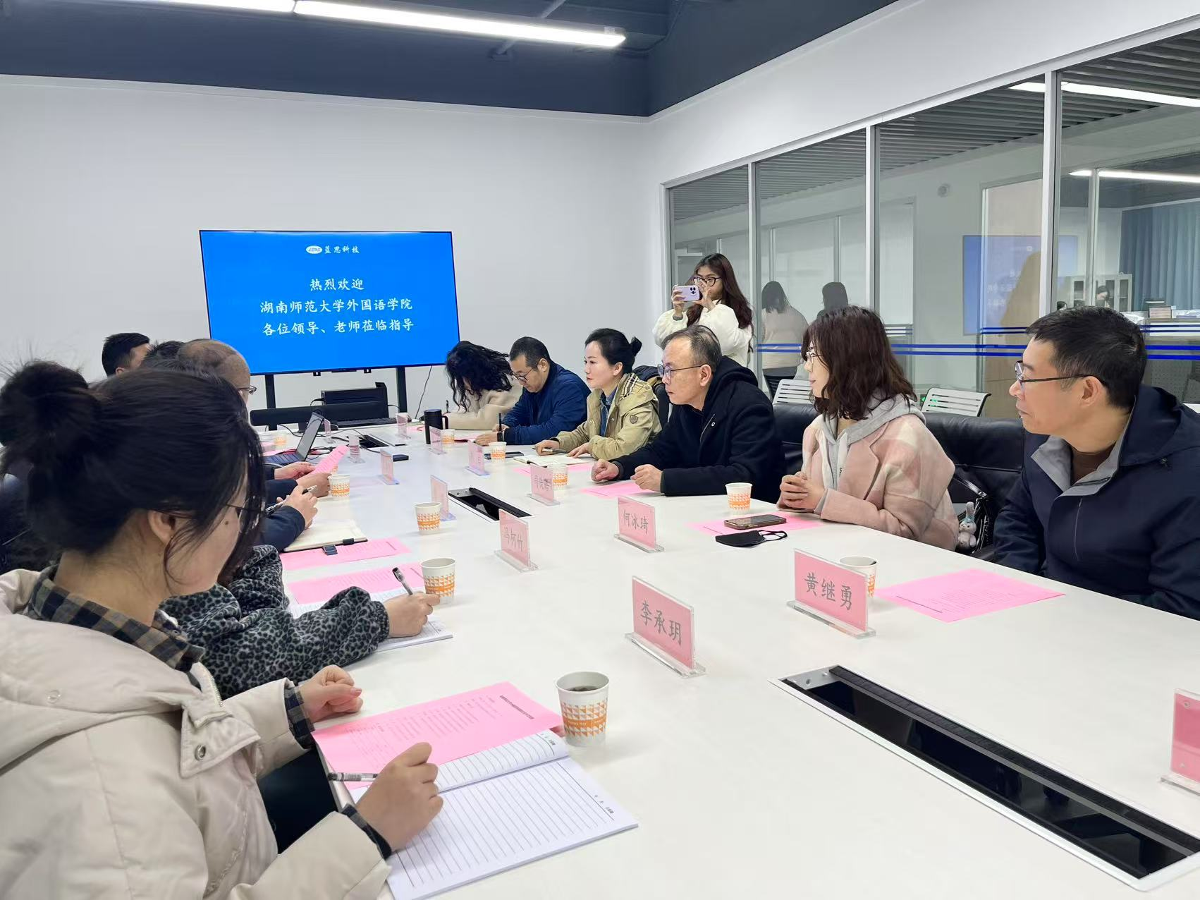 对此,学院探讨与蓝思科技共建“国际化人才联合培养基地”,为学生提供跨境电商运营、国际项目协调等岗位实习机会,同时选派教师参与企业横向课题研究,助力解决国际化进程中的语言服务难题。