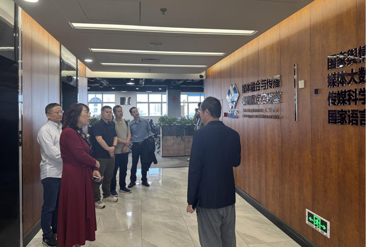 人工智能与精准国际传播研究院副院长蒋莉华、杨安,面向国际传播的智能计算研究中心主任曾道建、现代化新湖南国际传播应用中心主任马纳克等参加考察调研。