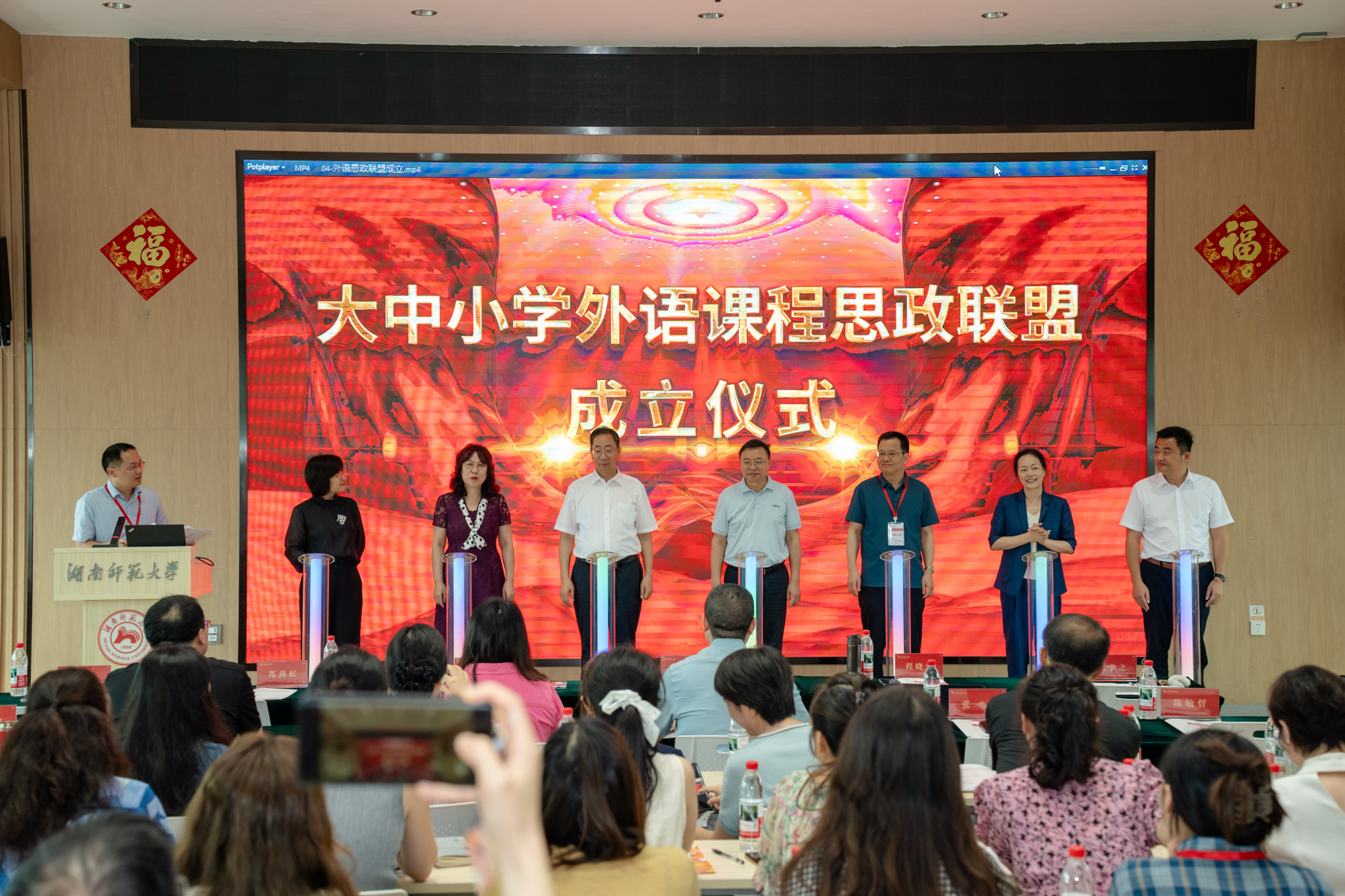 大会开启了“大中小学外语课程思政联盟”的成立仪式。并选举太阳成官网15vip太阳集团官网院长曾艳钰教授为联盟理事长,太阳成官网15vip太阳集团官网副院长刘白教授、闽南师范大学肖仕琼教授、湖南省教科院周宁之研究员、湖南师大附中梅溪湖校长张志、怀化市湖天中学正高级教师张欢英等5位专家为副理事长。联盟首批成员单位涵盖20余所高校、70余所中小学、5个科研机构。