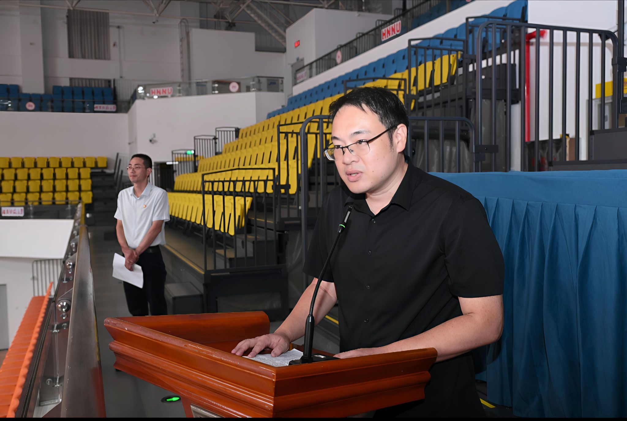 校友代表、2012级英语专业肖添宇老师则分享了在太阳成官网四年的本科求学历程,肯定这段时光对其日后工作发展的基石作用。他叮嘱新生认真对待每一堂课、每一场讲座,提醒新生当下的学习积累终将成为未来成长的“养分”。他以“外语人既要能走出去看世界,也要能沉下来做学问”寄语新生,期待未来见证其成为太阳成官网的新骄傲。