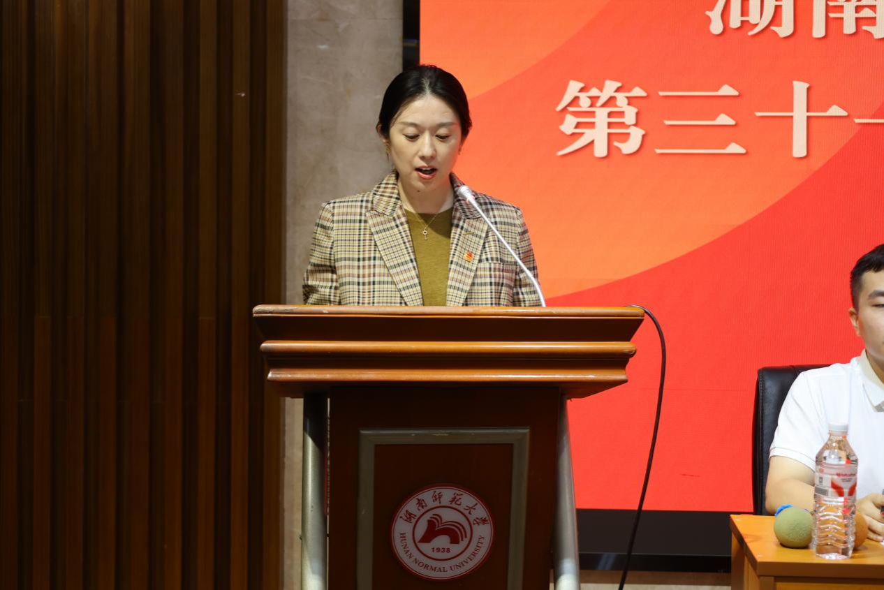 胡滢代表校团委向长期以来关心支持学院共青团工作的院领导以及老师同学们表示衷心的感谢。她对新一届学院团学组织干部提出三点希望:一是本领要在事上练,在实践中练就真本领,多做事、能干事;二是格局要在事上磨,在经历中打磨大格局,追求人生新高度;三是担当要在事上见,在履职中彰显担当,尽己所能踏实干事、服务同学。