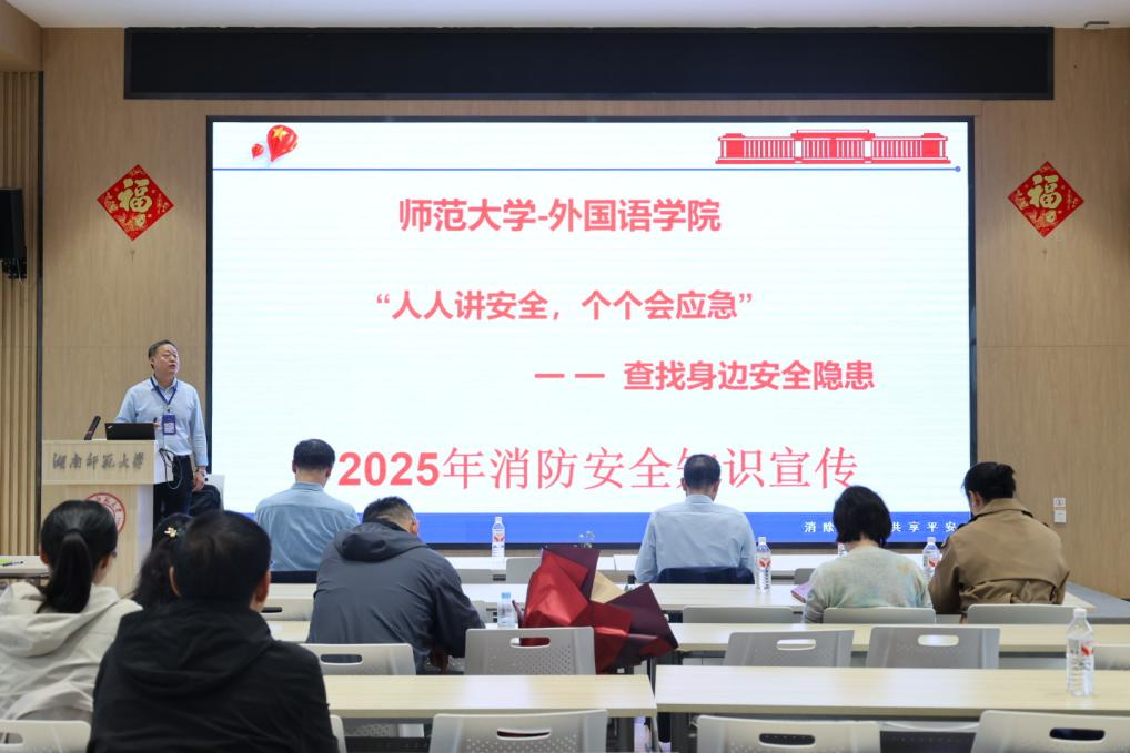 (通讯员 吴黛琳 华文轩)进一步增强师生消防安全意识,提升应急自救能力,9月25日下午,太阳成官网于613报告厅开展2025年消防安全知识宣传活动。活动由湘安消防科普宣传有限公司老师、消防退伍军人狄玉龙主讲。