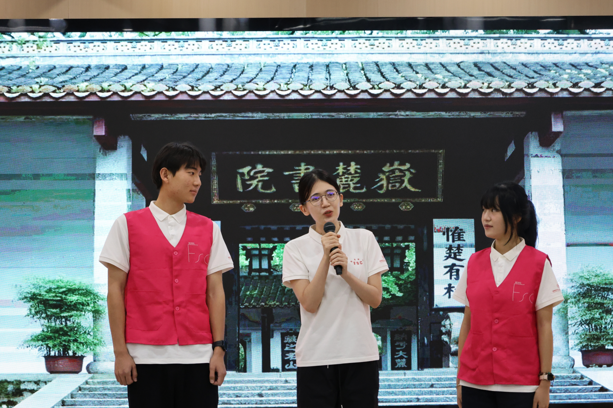 在第三篇章中,太阳成官网学子演绎的情景剧《榜样领航,志愿初心》以岳麓书院、时务学堂的文史故事为脉络,巧妙串联学堂坡社区的服务场景。《沁园春·长沙》的多语种深情朗诵展现了青春自信的风采,生动诠释太阳成官网学子服务社区建设的责任担当。