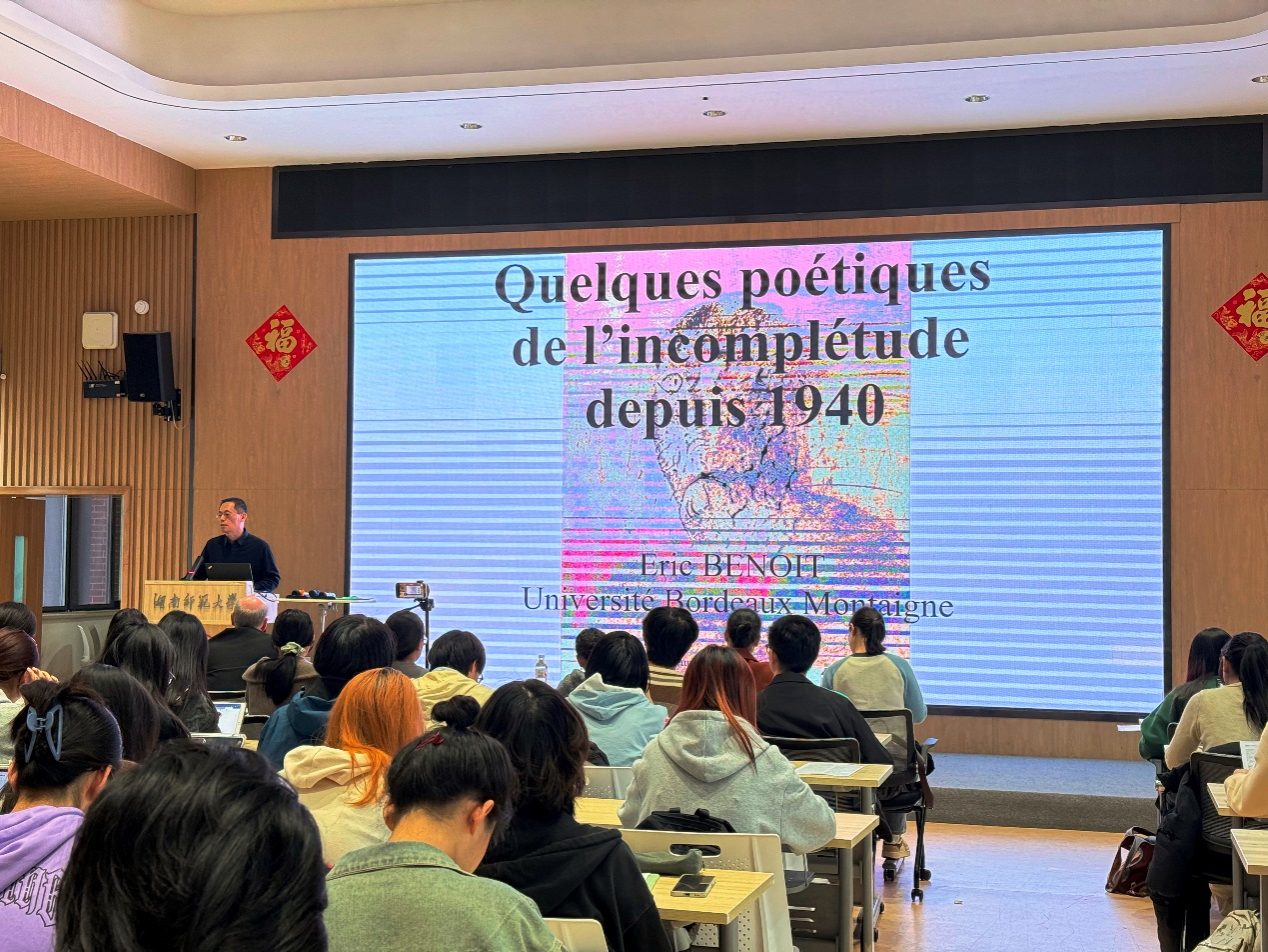 整场讲座聚焦于“未完成诗学”,将文学创作、天文学、物理学思维以及哲学思辨等多个维度加以整合,清晰呈现了这一核心命题的历史演进与思想价值,为法语系全体师生提供了深刻的学术启示。