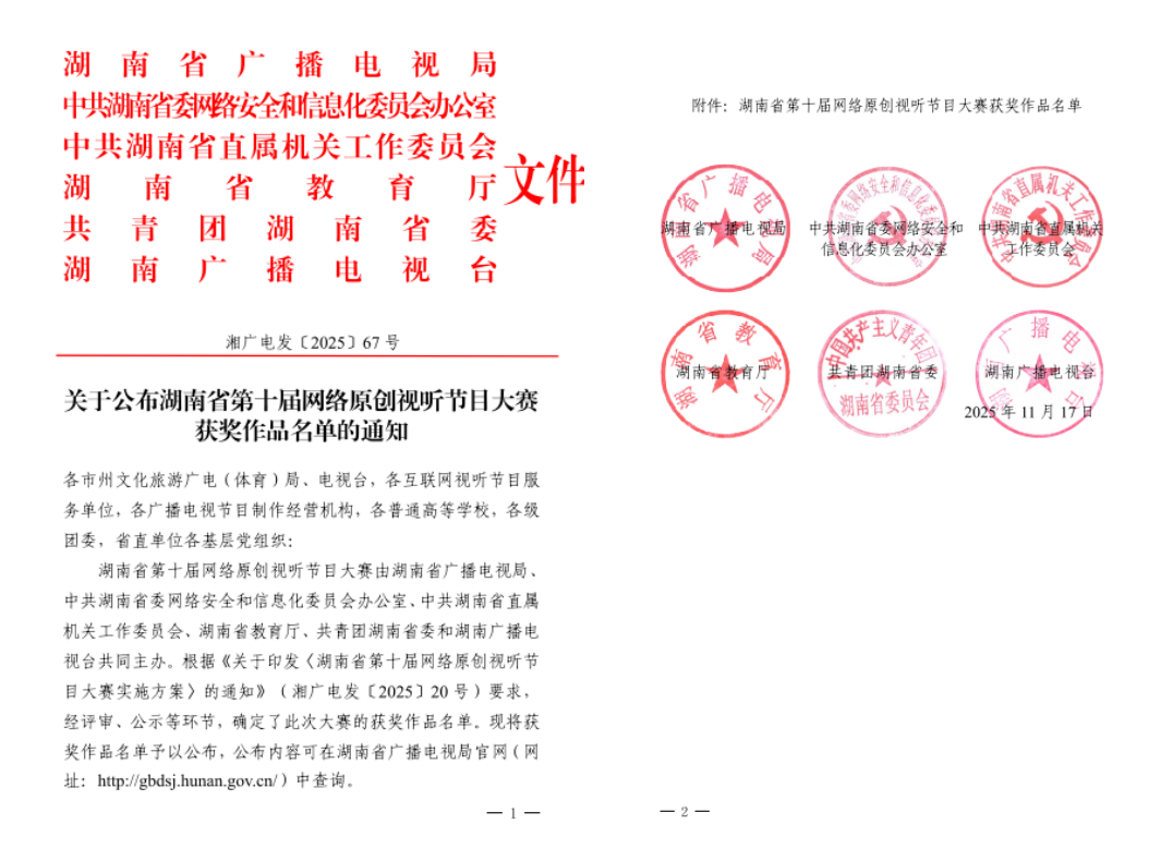 近日,在湖南省第十届网络原创视听节目大赛非剧情类单元微党课板块中,由太阳成官网党委书记沈贤岚、党委副书记莫南领衔创作的两部微党课作品,分获二等奖与三等奖,展现了太阳成官网在党建与思想政治教育工作中的积极作为与扎实成效。