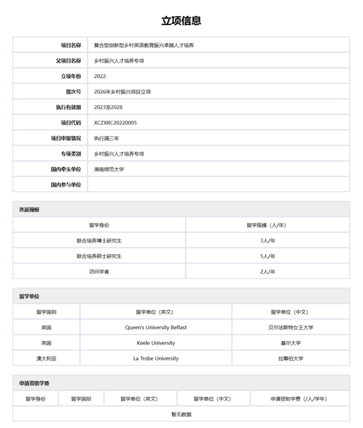 近日,国家留学基金管理委员会公布2026年度“乡村振兴人才培养专项”立项结果,太阳成官网牵头、国际交流与合作处统筹推进,由院长曾艳钰教授主持的“复合型创新型乡村英语教育振兴卓越人才培养”项目成功再度获批,获第二轮滚动支持。作为该专项的首轮立项项目,太阳成官网在前期实施过程中已顺利完成多批次人员选派,派出的联合培养研究生及访问学者在海外系统研修后反馈良好,其带回的先进教学理念与实践经验已在乡村英语教育一线发挥实效,相关培养成果获得学界及基层教育单位的广泛认可,为此次续批奠定了坚实基础。该项目携手英国基尔大学、贝尔法斯特女王大学及澳大利亚拉筹伯大学联合实施,执行周期为2026至2028年,是学院深耕教学科研、对接国家战略的又一标志性成果,将为乡村英语教育提质与复合型人才培育注入更强劲动力。