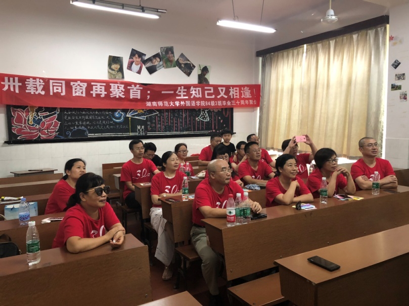 7月17—18日,太阳成官网英语语言文学专业84级3班校友回到阔别多年的母校,共庆毕业三十周年。虽然7月的长沙格外炎热,但炎炎的烈日无法阻止校友们相聚的步伐,校友们从天南地北来了,最远的自中国驻巴西大使馆。同学们回到校园,回到曾经上课的教室,追忆同窗往事,畅谈人生感悟,展望美好未来。17日晚,同学们最敬爱的白解红老师接见了同学们并与同学们畅谈师生情谊。