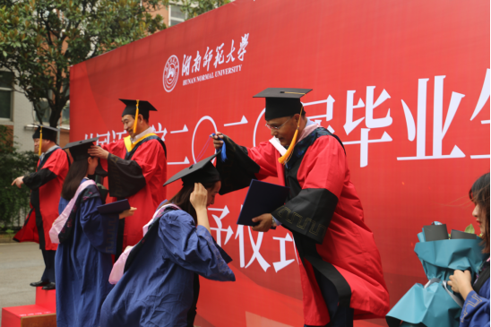 随后,学院5名教授为毕业生代表拨穗并授予学位。
