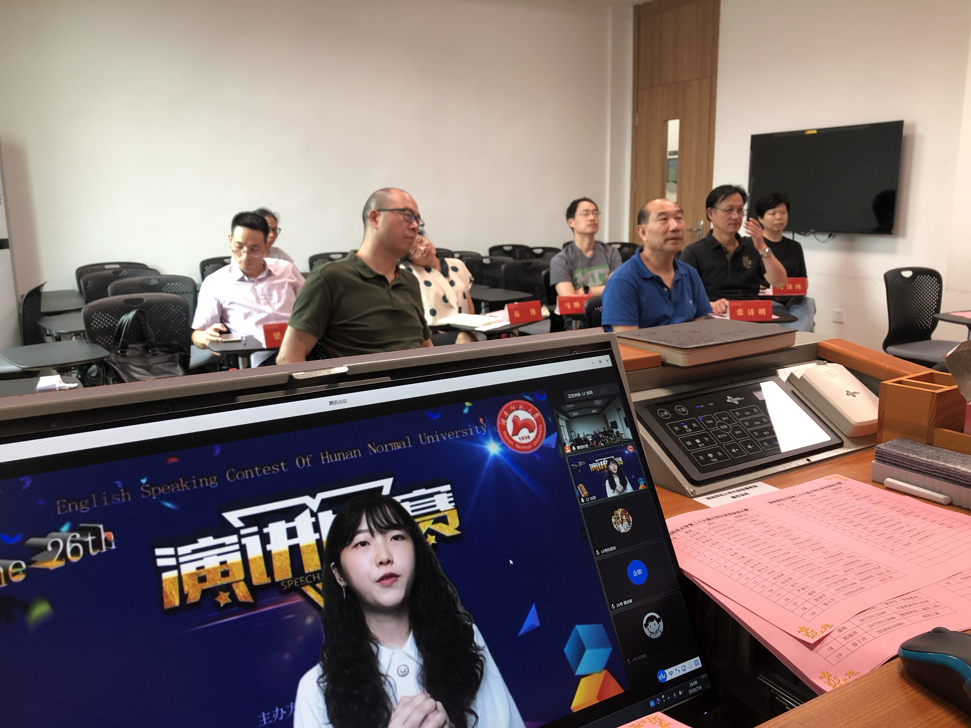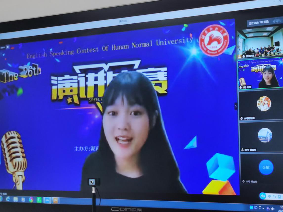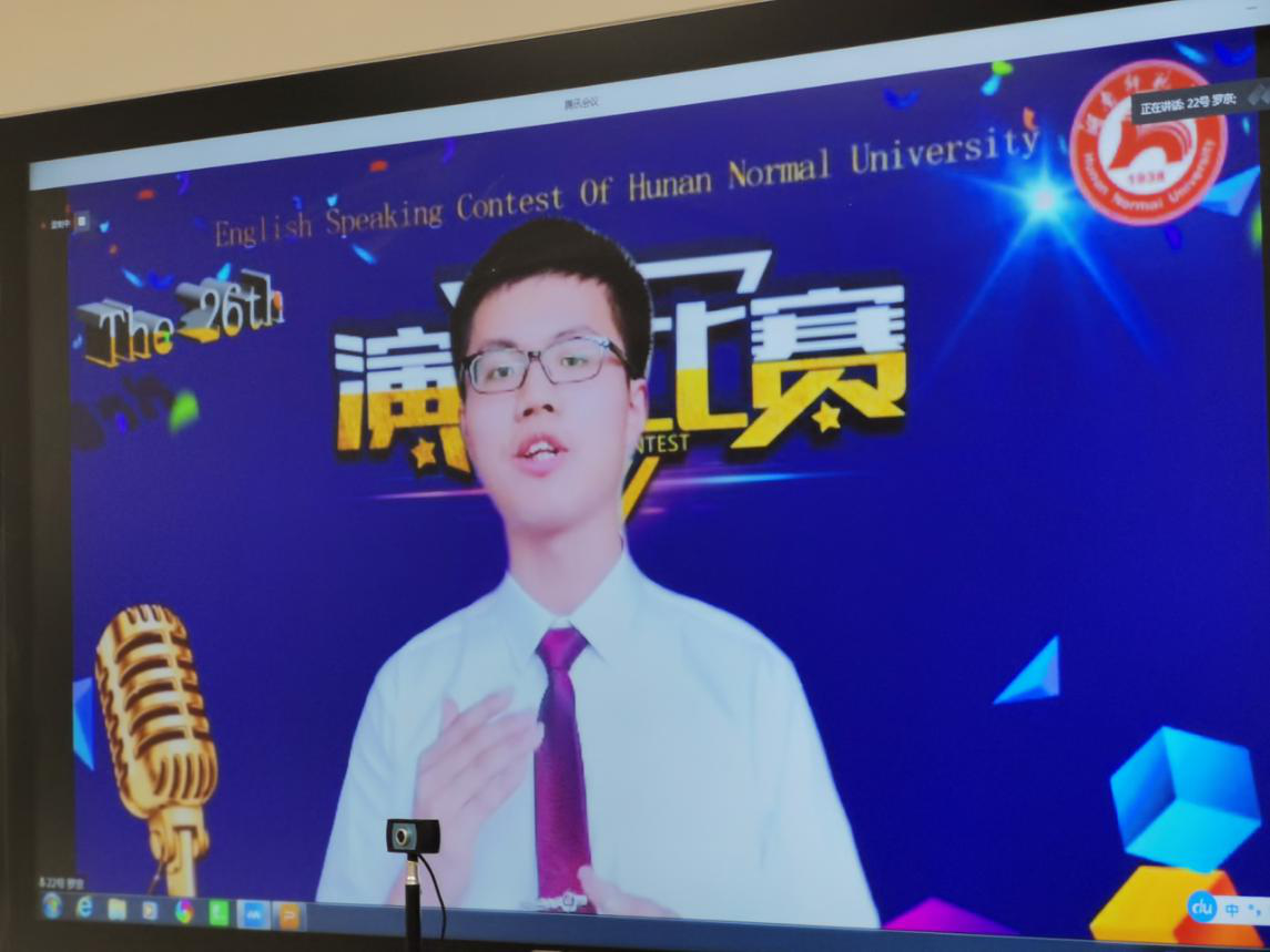 (通讯员邓林 陈彦孜 贺翠蓉)7月6日下午湖南省2020年大学生英语演讲比赛初赛暨15vip太阳成第二十六届大学生英语演讲比赛在15vip太阳集团官网通过腾讯会议成功举办,15vip太阳集团官网副院长谭福民教授担任评委组长,副院长廖光蓉教授代表学校竞赛组委会致开幕词。廖光蓉对非常时期能采用新的形式举办比赛表示欣慰和祝贺,并希望以赛促学,以赛促教,以学促改,不断提升学生综合运用英语的能力,在各级各类竞赛中取得优异成绩,为一流学科建设增光添彩。