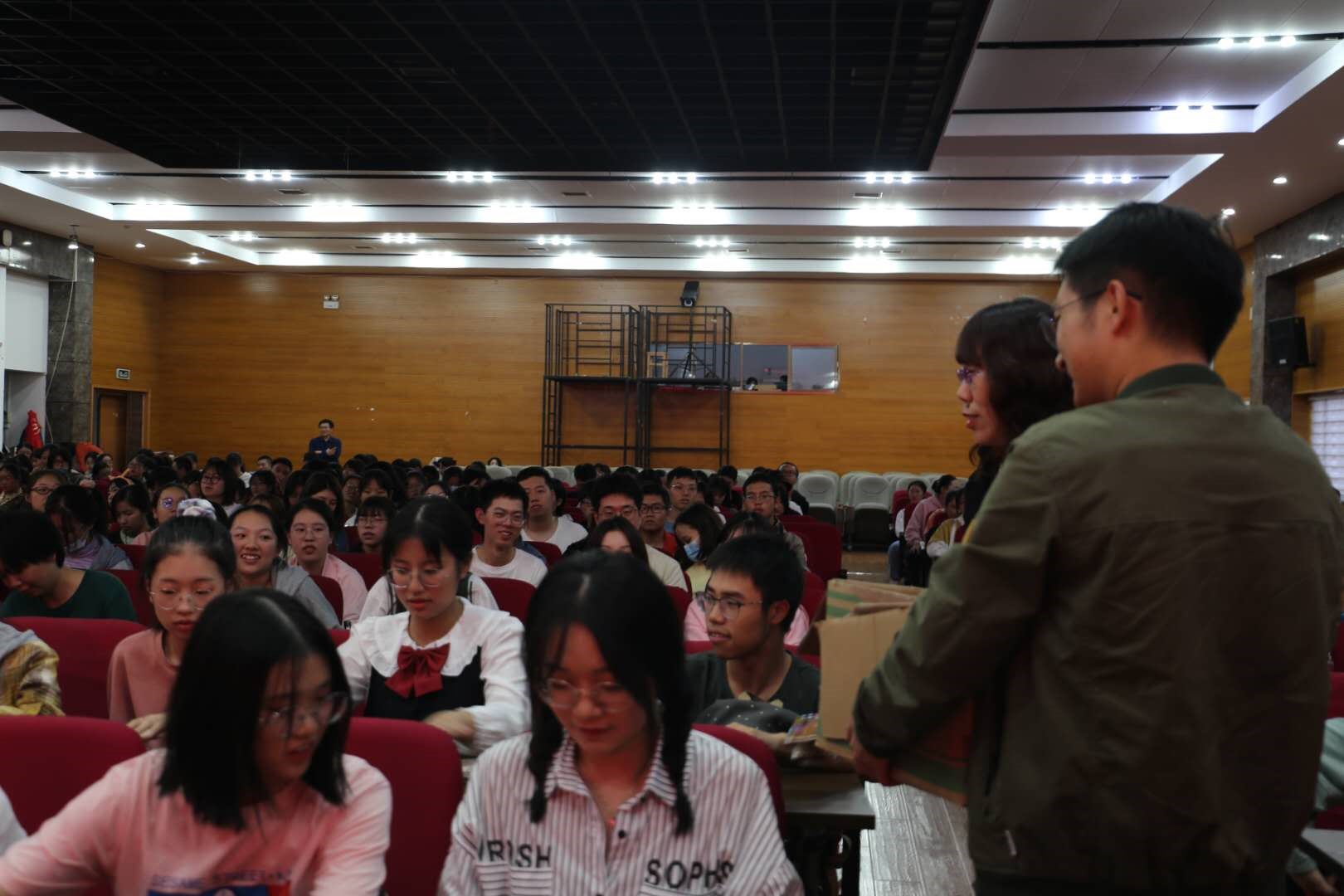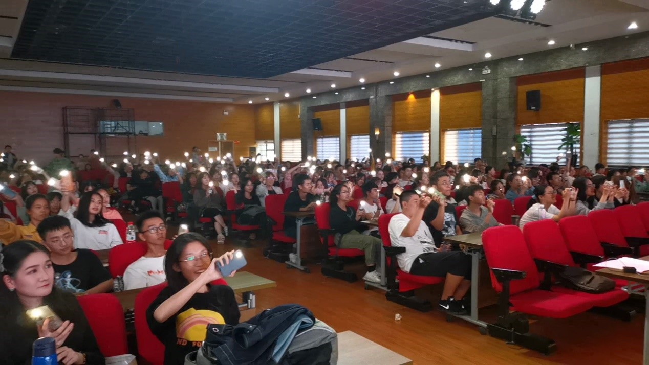 院学工办主任张元强,学工办周凌月、姚雯、舒怡老师,全体新生助理辅导员以及2020级全体本科新生300余人聆听本次讲座并参与汇演活动。