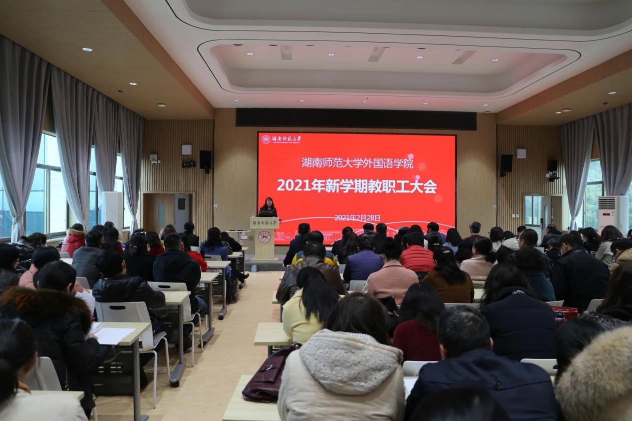 (通讯员 丁家宜 王政 陈可颐)为传达学校新学期工作会议精神、部署学院新学期工作,2月28日下午,学院于腾龙楼613报告厅举行2021年新学期教职工大会。全体院领导出席会议,会议由院党委书记唐建文主持,院长曾艳钰作新学期工作报告。