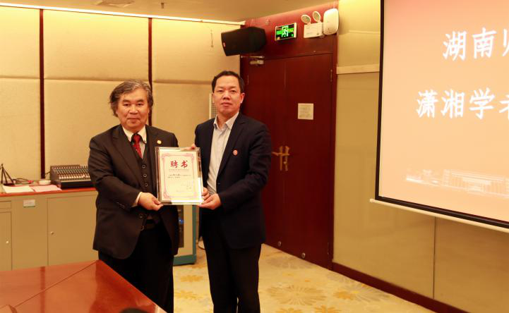 (通讯员 彭宜)3月11日下午,太阳成官网在国际学术交流中心四楼会议室举行“潇湘学者”聘任仪式。仪式由副校长唐贤清主持,校长刘起军为李大清教授等“潇湘学者”颁发聘书。