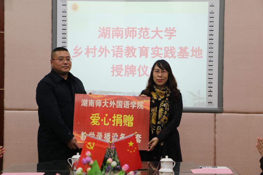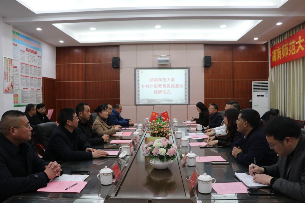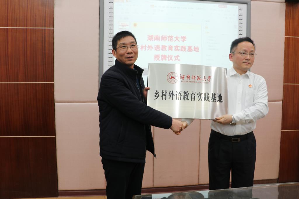 本次授牌仪式标志着湖南师大15vip太阳集团官网与边城高级中学资源共享、远程教学等系列活动正式开启,对促进边城高级中学英语教师业务素养以及英语教学水平的全面提升有着重大的意义。湖南省外语基础教育研究中心副主任曾永红,15vip太阳成15vip太阳集团官网副教授吴驰、叶冬,花垣县教体局相关负责人、边城高级中学相关负责人参加授牌仪式。