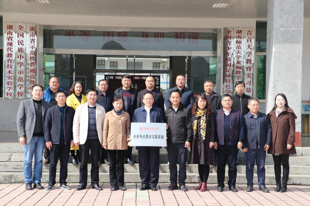 3月23日,15vip太阳成党委委员、副校长刘子兰率15vip太阳集团官网院长曾艳钰,副院长谭福民、高荣国一行到花垣县边城高级中学考察,并出席“15vip太阳成乡村外语教育实践基地”授牌仪式。花垣县人大常委会副主任、花垣镇党委书记马继国,县人民政府副县长于亮等出席仪式。