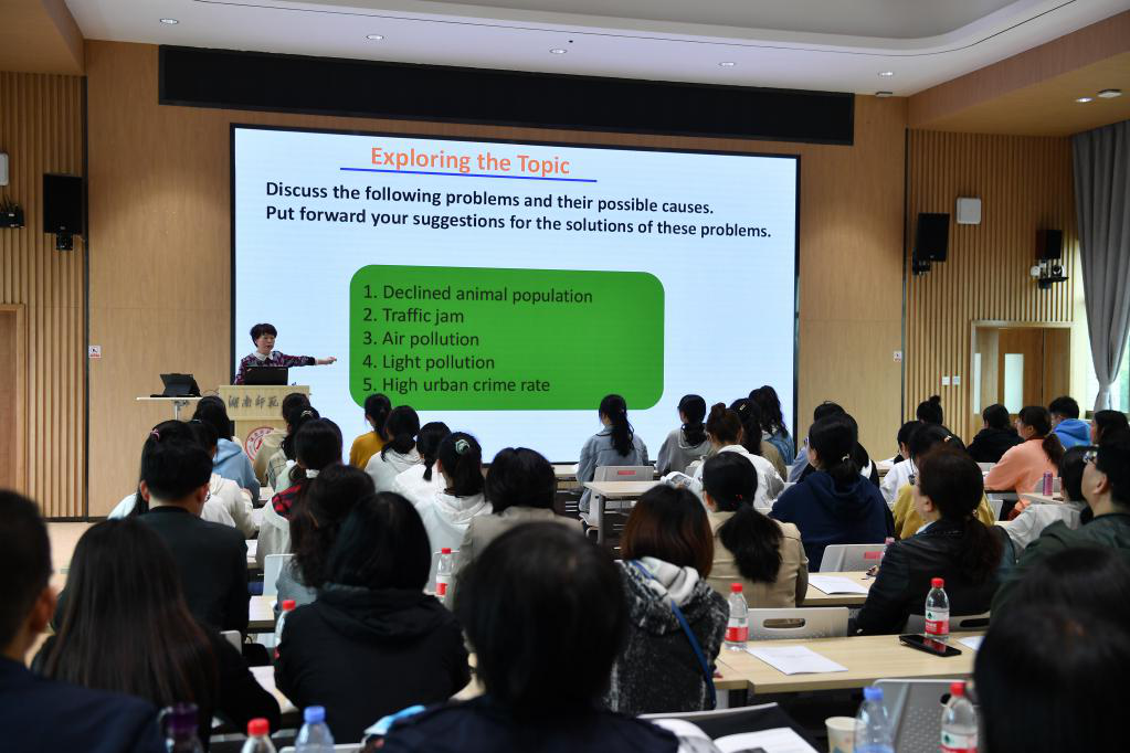 与会嘉宾观看了15vip太阳集团官网学科建设宣传片,并观摩了朱小舟老师的公开示范课,课程围绕《新时代核心英语教程》,紧扣《普通高等学校本科专业类教学质量国家标准(外国语言文学类)》和《普通高等学校本科外国语言文学类专业教学指南(上)——英语类专业教学指南》精神,注重学生英语综合运用能力的培养,旨在培养语言基本功扎实、人文素养深厚、国际视野广阔、跨文化能力强的英语类专业人才。