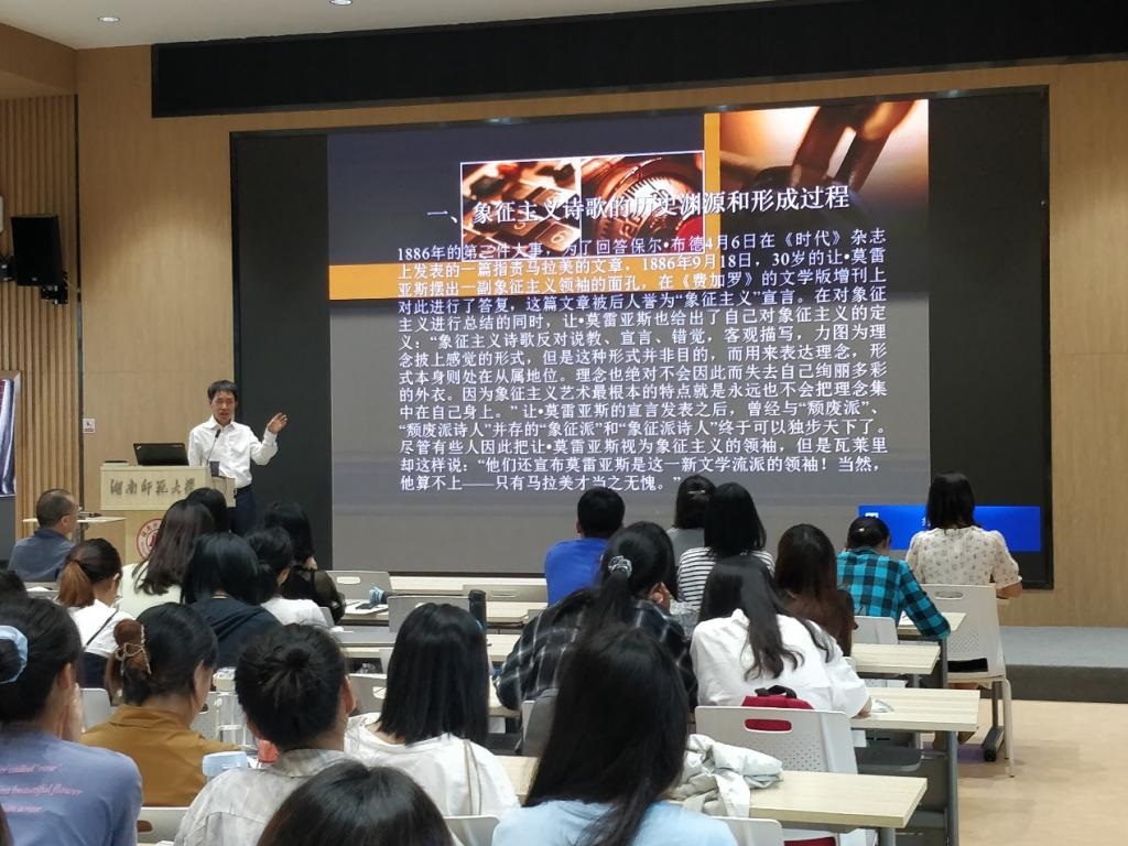 (通讯员 刘宇然 方丽平 肖茜)6月3日下午,西安外国语大学前校长、中国人民对外友好协会原副会长、第十三届全国政协常委、民革中央委员会常委、教育部高校外语专业教学指导委员会法语分委员会副主任委员户思社教授做客太阳成官网“潇湘法语讲坛”,在腾龙楼613多功能厅为太阳成官网法语系师生做题为《法国象征主义诗歌的起源和演变》的学术讲座。讲座由太阳成官网法语系特聘教授吴泓缈主持。
