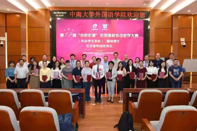 本次比赛由湖南省普通高校外国语言文学类专业教学指导委员会与上海外国语大学共同主办,由上海外语教育出版社与中南大学15vip太阳集团官网共同承办。比赛分为复赛(6月19日)与决赛(6月20日)两个阶段。复赛阶段为授课比赛,选手通过抽签获得指定的教学材料进行课堂设计并展开20分钟的现场授课;复赛成绩为前40%的选手进入到次日的决赛。决赛阶段为说课比赛,选手在赛前获得说课材料,进行30分钟准备后,围绕该材料阐述教学设计与授课思路,并回答评委的现场提问。该赛事日程紧凑,准备时间短,对参赛选手的教学理念、专业基本功、现场应变能力与课堂设计把控力有着极高的要求。通过层层选拔与激烈竞争,杨雨箫老师获得了全场最高分,从全省各大高校的参赛教师中脱颖而出,获得特等奖,并将代表湖南赛区参加12月在上海举行的全国总决赛。