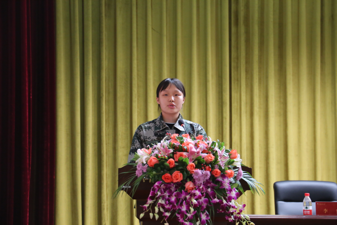 2021级本科生孟攀作为新生代表发言,她讲述了疫情期间参与抗疫志愿服务的亲身经历,分享了三点关于大学的想法:一是坚定理想信念;二是持之以恒地学习和实践;三是培养信心。她还代表全体新生表态:以仁爱精勤为指引,以奉献社会为方向,提升自我能力和修养,争做一名不负时代、不负使命的师大外院人。