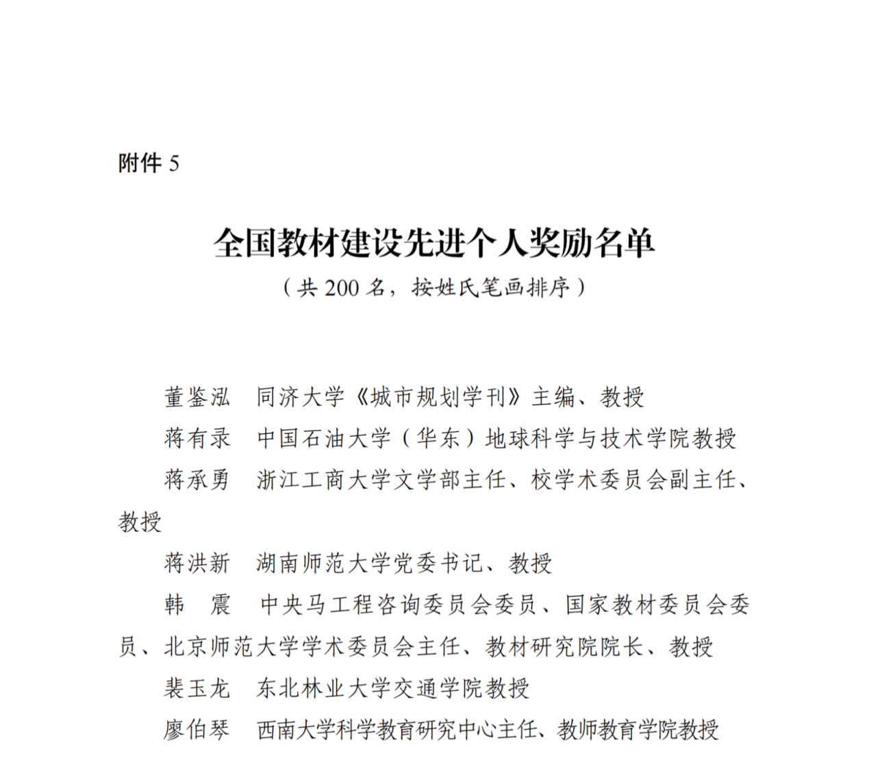 (通讯员 王耀光)10月12日,全国教材工作会议暨首届全国教材建设奖表彰会在北京举行,会上公布了《关于首届全国教材建设奖奖励的决定》(国教材〔2021〕6号)。校党委书记、欧洲科学院院士蒋洪新教授获首届全国教材建设先进个人,其主编的教材《英美诗歌选读》获全国优秀教材二等奖。