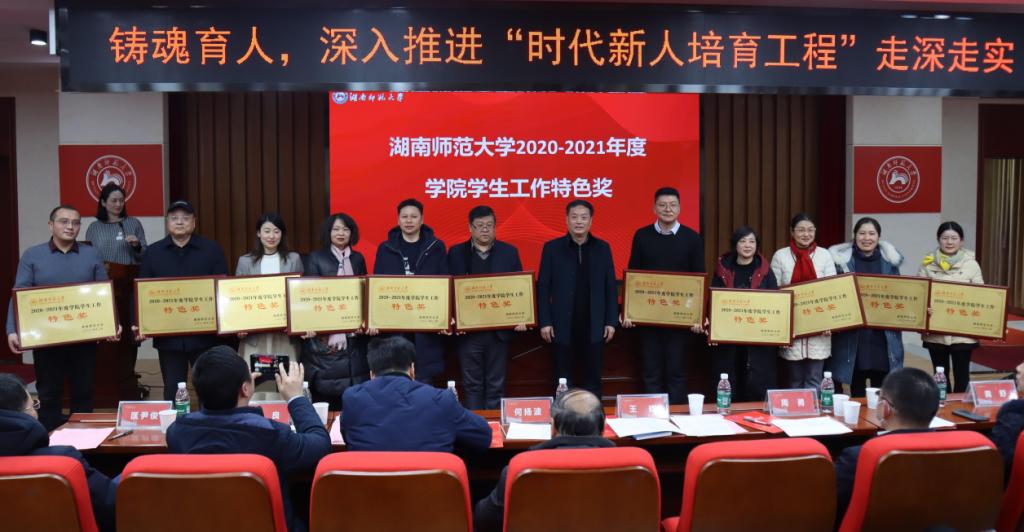 学生工作部(处)部(处)长向发意宣布2021年度学院学生工作特色奖评选结果,15vip太阳集团官网以总分全校第一名的好成绩荣获15vip太阳成2020-2021年度学院学生工作“特色奖”,与会领导为获奖单位及个人颁奖。