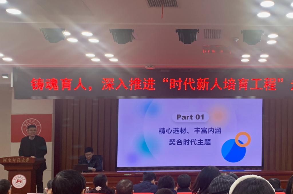 院党委副书记李蜜以“‘为你读诗’诗歌文化育人和传播的实践”为主题,汇报了学院通过精心选材、丰富内涵,创新传播、多维推广等途径,注重实效、实现以文化人,深入打造《为你读诗》活动和项目品牌的情况。他表示,《为你读诗》在推出的12期内容中,精心选取学生喜闻乐见的素材,着力让校园诗歌文化传播更加贴近生活、与时代同向同行,以主流文化和时代精神引领学生成长成才。学院在新生入学教育、专业语系课程、线上线下宣传平台等维度,推动项目“进活动、进专业、进教学、进生活”,着重培养大学生人文素养。