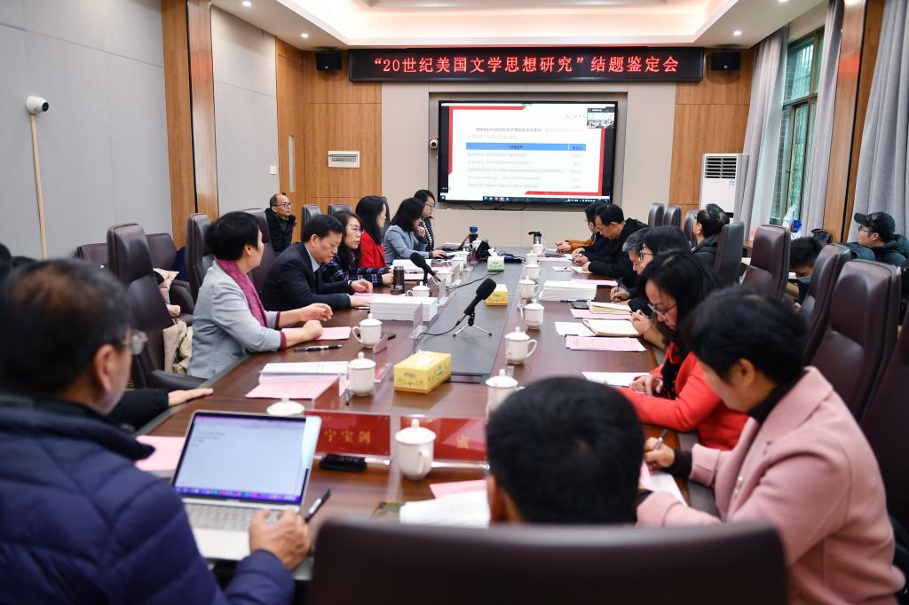 评审专家认真查阅了课题研究的过程性材料和成果性材料,从专业的角度对项目进行提问和评议。专家组一致认为,“20世纪美国文学思想研究”项目在蒋洪新教授的主持下,研究方法得当、研究工作扎实有效、阶段性成果丰富、最终成果厚重,实现了课题研究的既定目标,对外国语言文学研究具有开拓性意义,体现了极高的学术价值。