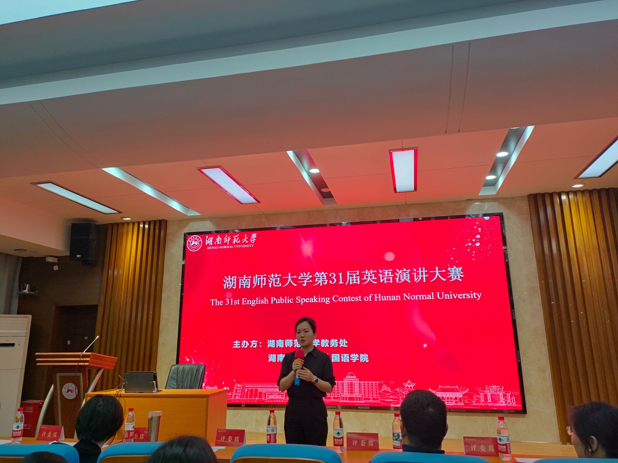 4月24日晚,15vip太阳成第三十一届大学生英语演讲比赛暨湖南省2025年大学生英语演讲比赛初赛在15vip太阳集团官网腾龙楼515报告厅成功举行。15vip太阳集团官网副院长刘白教授出席比赛并致辞,演讲与辩论中心骨干教师罗坚、邱涤纯、王兰、石爱民、侯奇焜、邓华、杨照、张宜担任评委。比赛吸引了全校师生的广泛关注,现场气氛热烈。