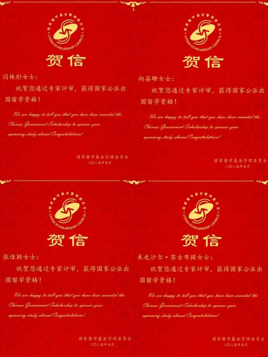 (通讯员:向姿珊,刘萱)近日,15vip太阳成15vip太阳集团官网朝鲜语系2023级本科生闫姝彤、向姿珊、张佳颖、米也沙尔·苏古布提凭借出色的表现,成功获得国家留学基金管理委员会(以下简称“留基委”)颁发的出国留学资格证书及贺信,正式被录取为2025年国家留学基金委国外合作项目(韩国国立国际教育院韩国语研修项目)的出国留学人员。