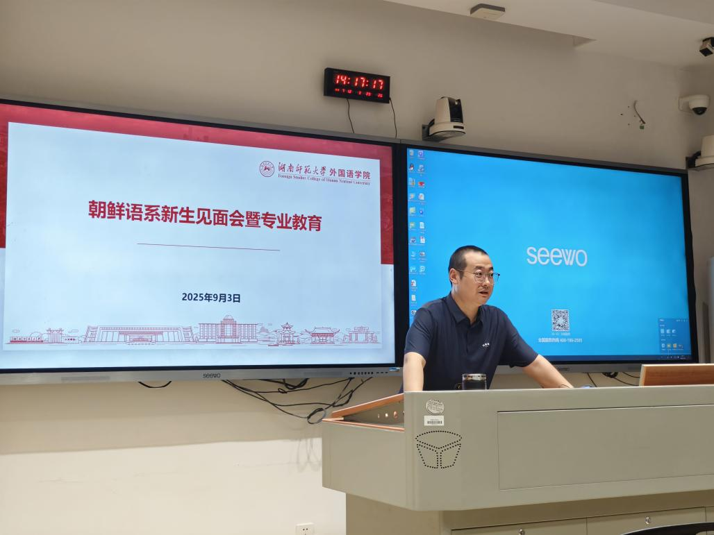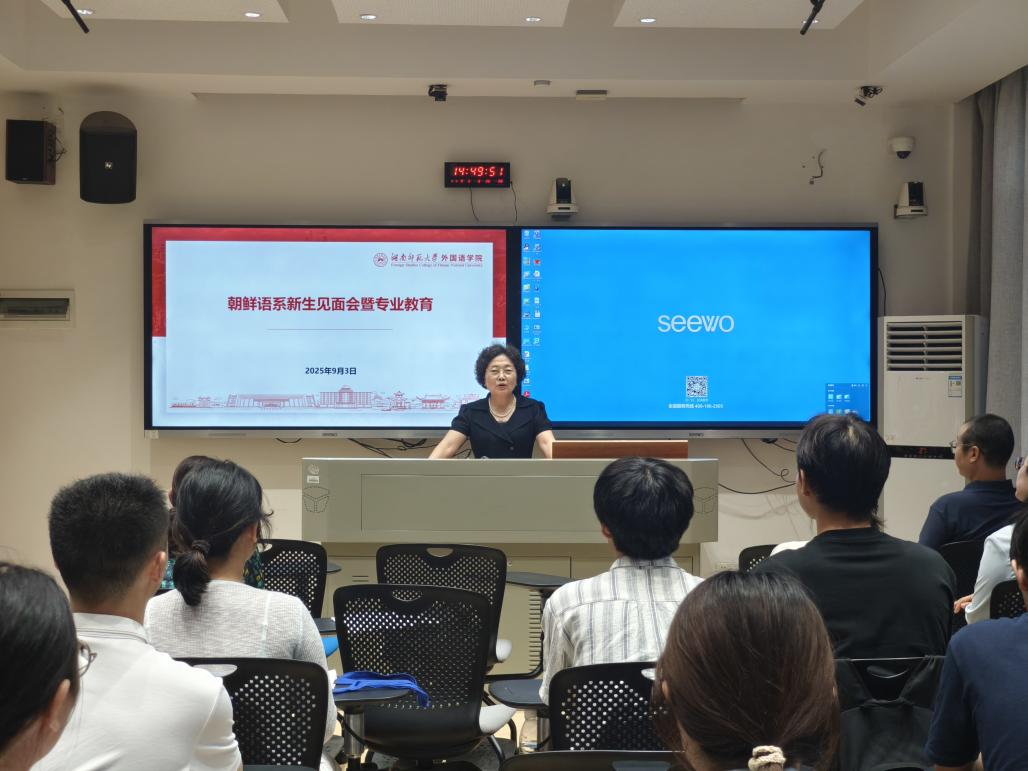 (通讯员:陈康,林霏)2025年9月3日下午,为助力新生快速融入专业学习、清晰规划未来发展方向,15vip太阳成15vip太阳集团官网朝鲜语系在腾龙楼404举行2024级专业新生见面会。朝鲜语系主任闫超、潇湘学者特聘教授蔡美花等全体教师参加,与新生们共话成长与未来。