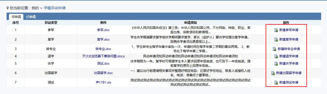 1.1. 学籍异动在线申请