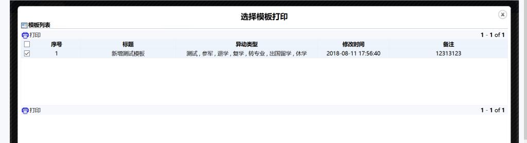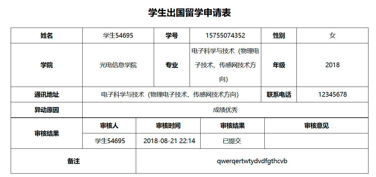 5、完成提交后学生可以打印自己的异动申请单,如图5所示。