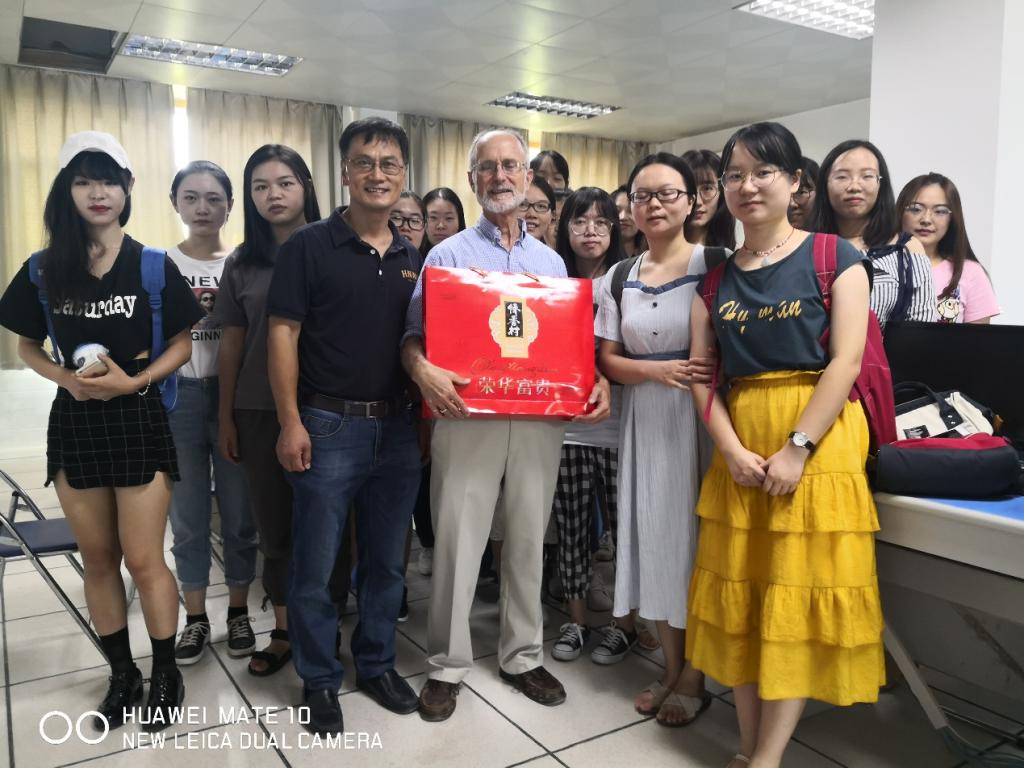 院党委书记唐建文向Grant Wolf教授致以亲切的中秋节问候,表示院方高度重视此合作办学项目,愿为此项目的顺利进行提供一切必要的协助,同时感谢Grant Wolf教授不辞辛劳的工作,勉励全体同学努力学习课程,充分汲取先进的教学理念,为回国后更好的从事教学工作做准备。