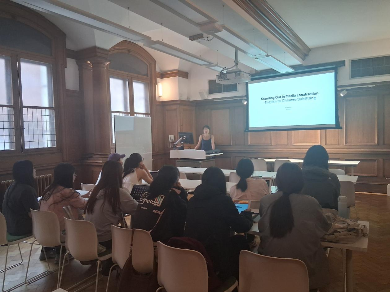 8月6日,同学们走进英国知名语言服务公司VSI(Voice & Script International)作为总部位于伦敦的全球化企业,VSI在字幕、配音、本地化等领域享有盛誉。公司人员详细介绍其国际字幕与配音业务流程,并带领同学们参观配音棚,让大家对行业运作与职业路径有了直观认识。