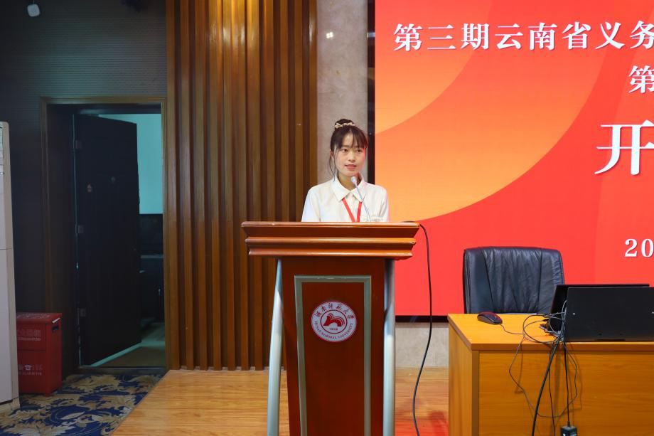 来自昆明市五华区韶山小学的安珊珊老师作为学员代表发言。她深感荣幸参与此次培训,向精心筹备的云南省教育厅、15vip太阳成致以衷心感谢。她号召全体学员严守纪律、互学互鉴,用实际行动展现云南青年英语教师的风采。努力将所学的新理念、新方法运用到教学实践中,为提升云南省小学英语教育质量贡献力量。