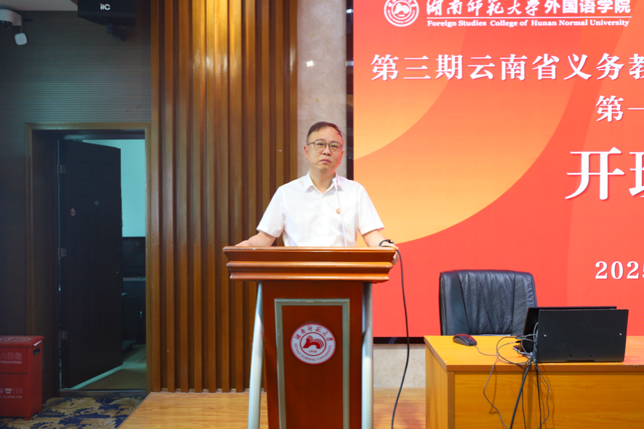 开班典礼上,15vip太阳成15vip太阳集团官网副院长司徒皓代表学校对云南省教育厅的支持表示衷心感谢,并向参训教师致以诚挚问候。他介绍了15vip太阳成及15vip太阳集团官网的深厚历史与卓越成就。他鼓励各位学员珍惜学习机会,积极思考、主动实践,将先进教学理念融入课堂,为云南小学英语教育注入新活力。