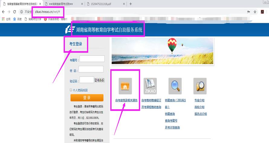 1、登录“湖南省高等教育自学考试自助服务系统”,网址http://zikao.hneao.cn/net/