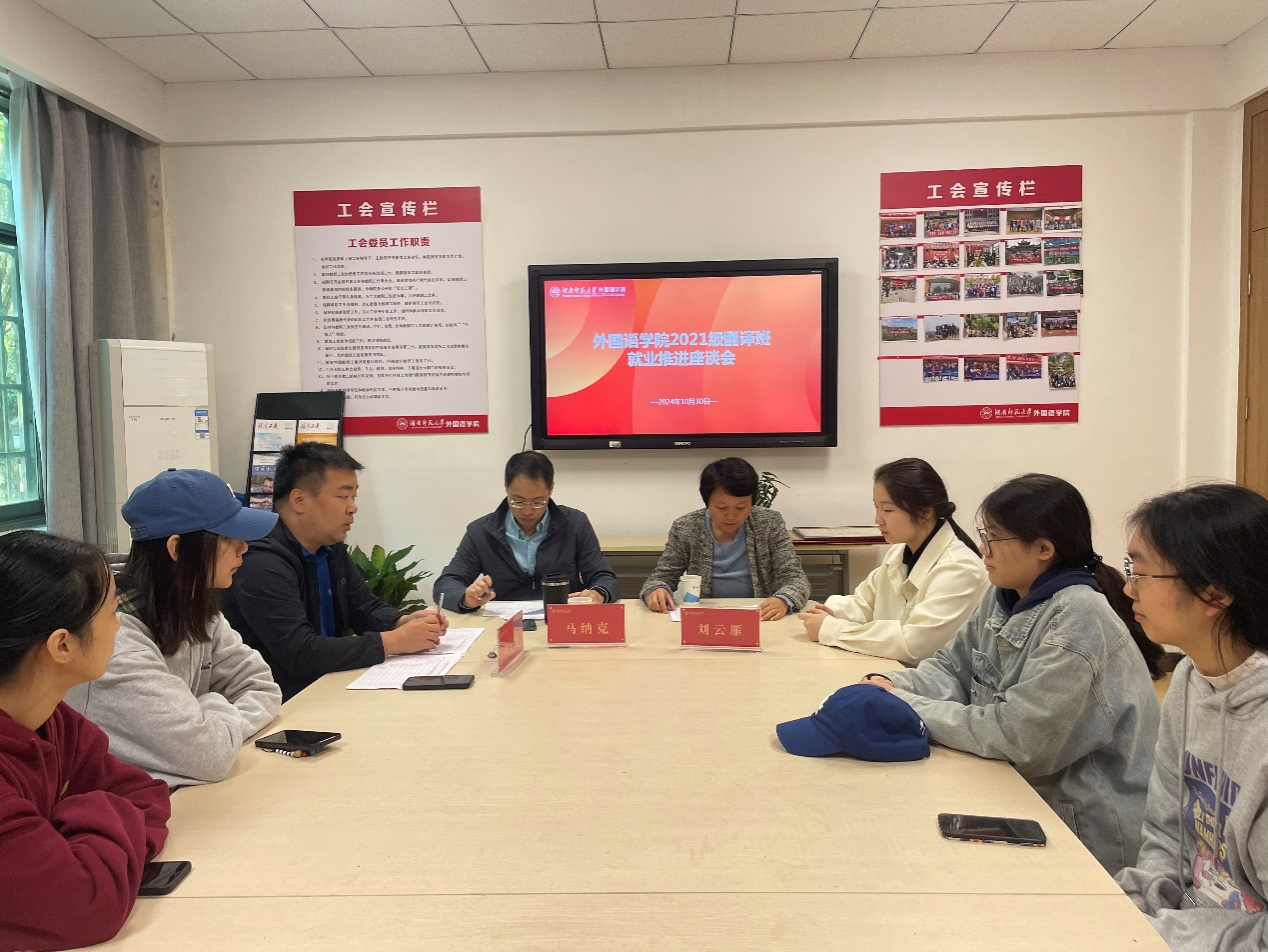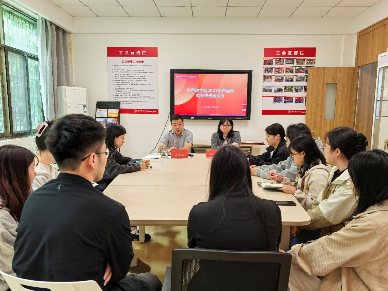 英语系主任叶冬副教授,翻译系主任马纳克副教授、刘云雁老师,法语系主任方丽平副教授,俄语系主任何冰琦老师,欧阿语系负责人邢鸿儒老师,韩语系韩燕老师,日语系肖婧老师,德语专业阳凌艺老师,阿语专业王定筠老师,葡萄牙语专业黄琳老师分别参加了各专业语系的2021级毕业生就业工作推进座谈会。