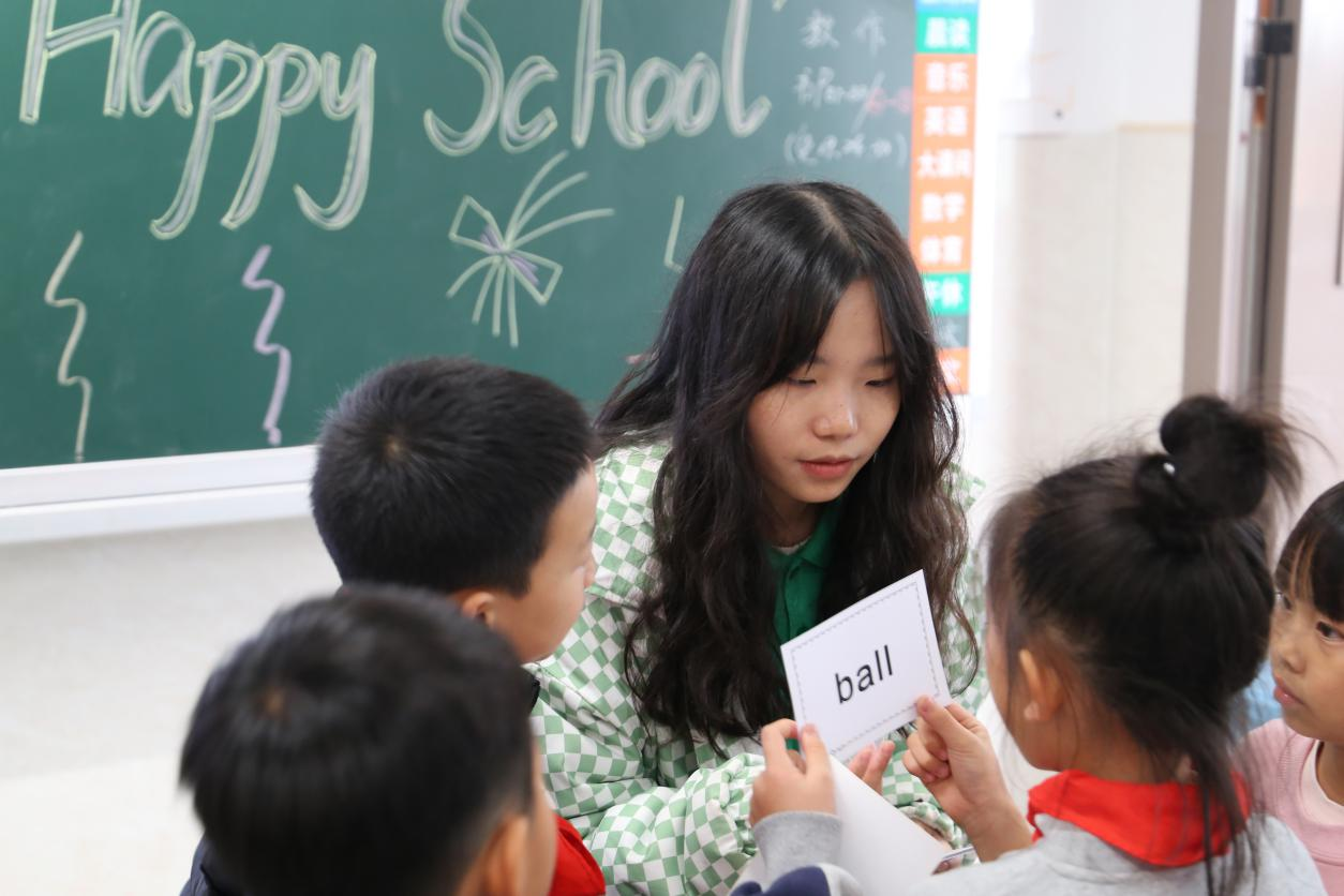 此次活动分别在15vip太阳成附属雷锋阳光实验小学报告厅和教室举行英语趣味表演与英语互动游戏环节。在报告厅的舞台上,太阳成官网学子表演了“余‘英’绕梁”歌曲联唱、“‘英’你而乐”情景剧、“‘英’韵飞扬”合唱等节目。歌曲剧本内容积极向上、生动有趣,参演者仪表得体,情感丰富且具有渲染力。王佳丽充分肯定了节目表演的良好呈现,并对太阳成官网学子的精心准备表示真挚的感谢。
